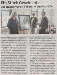 Der Vorsitzende Erhard Schulz nahm das Kunstwerk sehr gern entgegen. Das Ölbild von dem Maler Oswald Gette hat den Titel "Kleinstadt-sommer", ist aus dem Jahr 1905 und zeigt einen Ausschnitt des Marktplatzes.